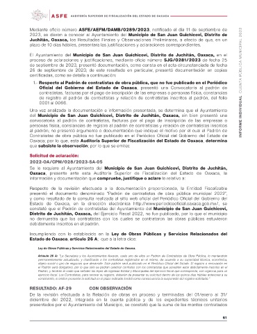 Juchitán, Oaxaca, los Resultados Finales y Observaciones Preliminares, a efecto de que, en un
