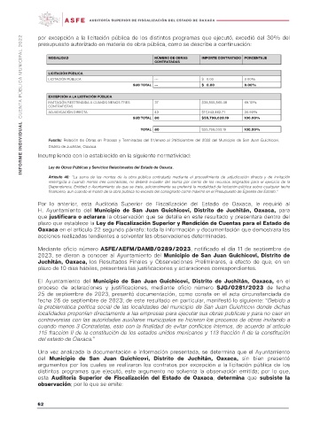 Artículo 46: “La suma de los montos de la obra pública contratada mediante el procedimiento de adjudicación directa y de invitación