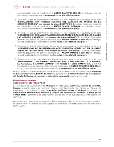 del Estado de Oaxaca, determina que subsiste la observación; por lo que se emite: