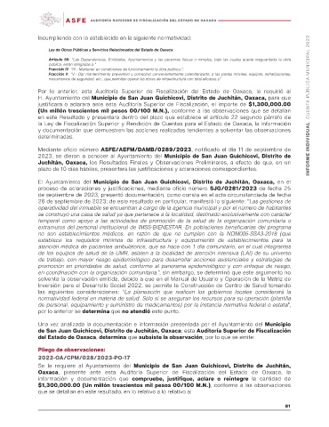 justificara o aclarara ante esta Auditoría Superior de Fiscalización, el importe de $1,300,000.00 INFORME INDIVIDUAL CUENTA PÚBLICA MUNICIPAL 2022