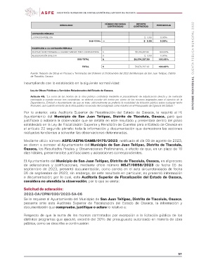 Por lo anterior, esta Auditoría Superior de Fiscalización del Estado de Oaxaca, le requirió al H.