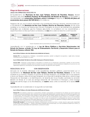 Pliego de Observaciones: INFORME INDIVIDUAL CUENTA PÚBLICA MUNICIPAL 2022