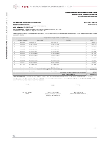 F FUENTE DE INFORMACIÓN: RECIBOS DE TRANSFERENCIA SPEI, OFICIOS DE NOTIFICACIÓN DE CUENTA BANCARIA PRODUCTIVA ESPECÍFICA Y EXCLUSIVA, PARA LA RECEPCIÓN Y
