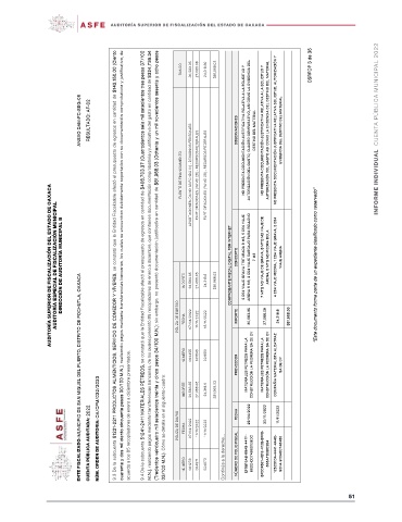 DIRECCIÓN DE AUDITORÍA MUNICIPAL B 9.3 De la subcuenta 51221-2211 PRODUCTOS ALIMENTICIOS, SERVICIO DE COMEDOR Y VÍVERES, se constató que la Entidad Fiscalizable afectó el presupuesto de egresos en cantidad de $142,150.00 (Ciento VÍVERES, cuarenta y dos mil ciento cincuenta pesos 00/100 M.N.), realizando pagos mediante transferencias bancarias, los cuales se encuentran debidamente soportados con su documentación comprobatoria y justificativa, de 9.4 De la s