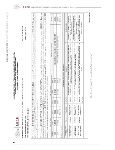 $155,925.57 (Ciento cincuenta $252,996.02 (Doscientos $55,819.35 BANCO 19,938.49 19,938.49 24,840.00 24,840.00 30,500.00 30,500.00 $75,278.49 $75,278.49 OBSERVACIONES OBSERVACIONES NO PRESENTA DOCUMENTACIÓN JUSTIFICATIVA NO PRESENTA DOCUMENTACIÓN JUSTIFICATIVA RELATIVA A SOLICITUD Y AUTORIZACIÓN DEL GASTO, RELATIVA A SOLICITUD Y AUTORIZACIÓN DEL GASTO, ASÍ COMO LA EVIDENCIA. ASÍ COMO LA EVIDENCIA. NO PRESENTA DOCUMENTAC