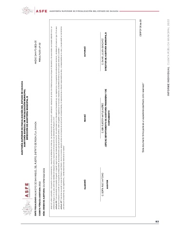 ANEXO DAM-FC-SEG-05 ANEXO DAM-FC-SEG-05 RESULTADO: AF-02 RESULTADO: AF-02 AUTORIZÓ _________________________________________ C. DAVID JULIÁN SÁNCHEZ C. DAVID JULIÁN SÁNCHEZ DIRECTOR DE AUDITORÍA MUNICIPAL B INFORME INDIVIDUAL CUENTA PÚBLICA MUNICIPAL 2022