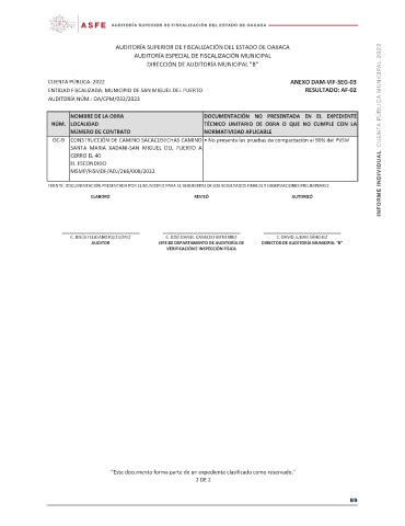 ENTIDAD FISCALIZADA: MUNICIPIO DE SAN MIGUEL DEL PUERTO RESULTADO: AF-02