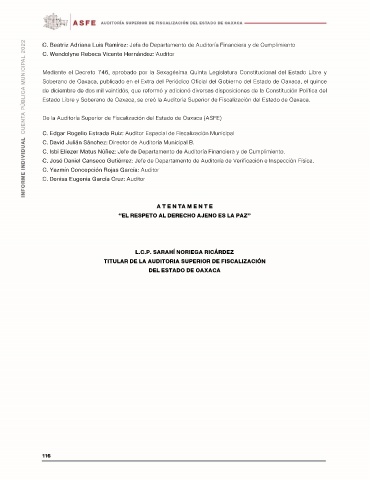 AUDITORÍA SUPERIOR DE FISCALIZACIÓN DEL ESTADO DE OAXACA INFORME INDIVIDUAL CUENTA PÚBLICA MUNICIPAL 2022 116