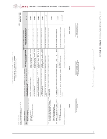 AUDITORÍA ESPECIAL DE FISCALIZACIÓN MUNICIPAL AUDITORÍA SUPERIOR DE FISCALIZACIÓN DEL ESTADO DE OAXACA DIRECCIÓN DE AUDITORÍA MUNICIPAL B EXPEDIENTE ARGUMENTO Y/O DOCUMENTACION LA CON CUMPLE PRESENTADOS ubicación de croquis los Presenta la de trabajos la a correspondientes trabajos uno, dos y tres finiquito. números Presenta número estimación estimación la a correspondientes uno, dos y tres finiquito. fotográfico reporte Presenta la d