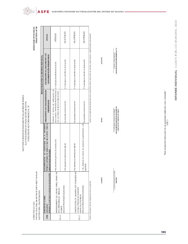 AUDITORÍA ESPECIAL DE FISCALIZACIÓN MUNICIPAL AUDITORÍA SUPERIOR DE FISCALIZACIÓN DEL ESTADO DE OAXACA DIRECCIÓN DE AUDITORÍA MUNICIPAL "B" EXPEDIENTE ARGUMENTO Y/O DOCUMENTACION LA CON CUMPLE PRESENTADOS de licencia la Presenta MPVG/R33-FIII/04/62/2022- número obra LCO. Con fecha 19 de noviembre de 2022 No presenta documentación No presenta documentación de y arquitectóniico No presenta documentación REVISÓ _________________________________ C. JO
