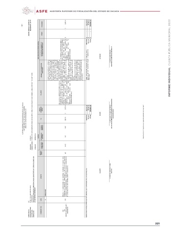 RESULTADOS PARA EL INFORME INDIVIDUAL VALORACIÓN DEL ARGUMENTO Y/O DOCUMENTACIÓN PRESENTADOS NO ATENDIÓ LA OBSERVACIÓN DEBIDO A QUE PARTES LAS POR SELLADO SE INTERVINIERON, LAS ANEXAN TAMPOCO LOS PRUEBAS QUE ESTUDIOS O EL USAR NO SUB-TOTAL OBSERVACIONES Y 16% I.V.A. TOTAL AUTORIZÓ _________________________________________ C. DAVID JULIÁN SÁNCHEZ DIRECTOR DE AUDITORÍA MUNICIPAL "B" INFORME INDIVIDUAL CUENTA PÚBLICA MUNICIPAL 20