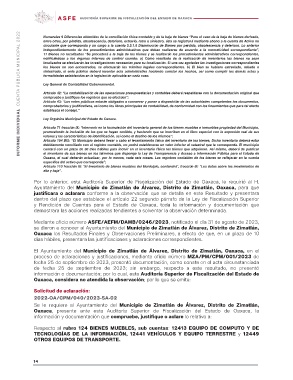 Por lo anterior, esta Auditoria Superior de Fiscalización del Estado de Oaxaca, le requirió al H.