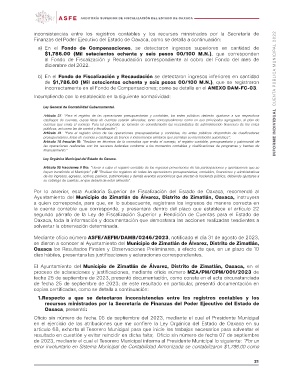 Por lo anterior, esta Auditoria Superior de Fiscalización del Estado de Oaxaca, recomendó al
