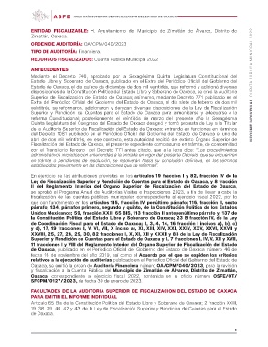 AUDITORÍA SUPERIOR DE FISCALIZACIÓN DEL ESTADO DE OAXACA INFORME INDIVIDUAL CUENTA PÚBLICA MUNICIPAL 2022