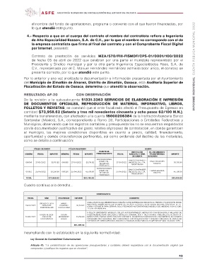 del Municipio de Zimatlán de Álvarez, Distrito de Zimatlán, Oaxaca, esta Auditoría Superior de