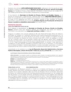 INFORME INDIVIDUAL CUENTA PÚBLICA MUNICIPAL 2022 Mediante oficio número ASFE/AEFM/DAMB/0246/2023, notificado el día 31 de agosto de 2023,