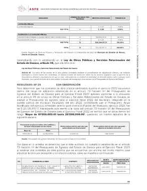 Artículo 46: “La suma de los montos de la obra pública contratada mediante el procedimiento de adjudicación directa y de invitación