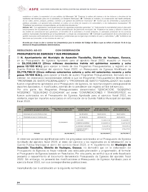 2022. Sin embargo, no presentó las modificaciones al Presupuesto de Egresos Aprobado para el