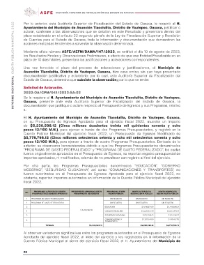 INFORME INDIVIDUAL CUENTA PÚBLICA MUNICIPAL 2022 Por lo anterior, esta Auditoría Superior de Fiscalización del Estado de Oaxaca, le requirió al H.