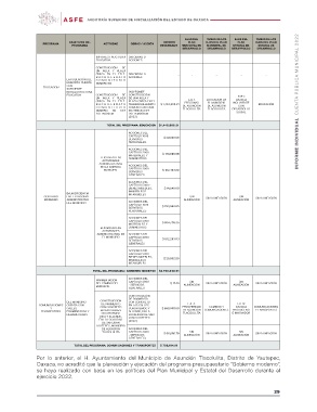 PROGRAMA OBJETIVOS DEL ACTIVIDAD OBRAS / ACCIÓN IMPORTE EJES DEL TEMAS DE LOS EJES DEL TEMAS DE LOS INFORME INDIVIDUAL CUENTA PÚBLICA MUNICIPAL 2022
