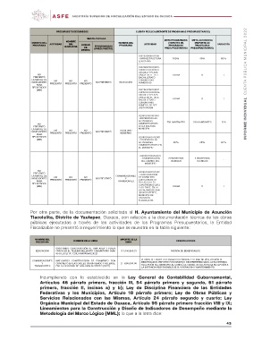 Por otra parte, de la documentación solicitada al H. Ayuntamiento del Municipio de Asunción