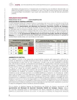 contraloría social municipal; asimismo, no acreditó establecer y mantener un ambiente de control