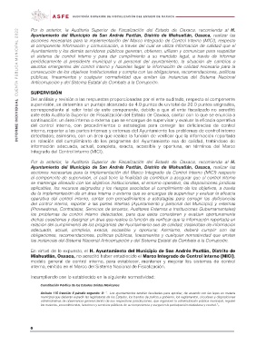 Miahuatlán, Oaxaca, no acreditó haber establecido el Marco Integrado de Control Interno (MICI),