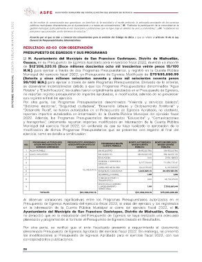 M.N.), para ejercer a través de dos Programas Presupuestarios, y registró en la Cuenta Pública