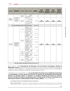 Por lo anterior, el H. Ayuntamiento del Municipio de San Francisco Ozolotepec, Distrito de