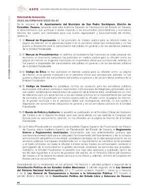 INFORME INDIVIDUAL CUENTA PÚBLICA MUNICIPAL 2022 AUDITORÍA SUPERIOR DE FISCALIZACIÓN DEL ESTADO DE OAXACA