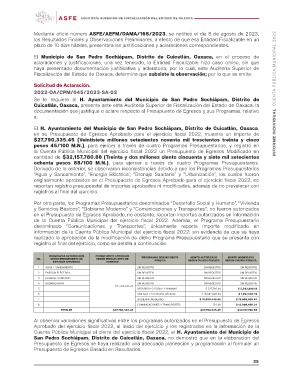 Mediante oficio número ASFE/AEFM/DAMA/165/2023, se notificó el día 8 de agosto de 2023, INFORME INDIVIDUAL CUENTA PÚBLICA MUNICIPAL 2022