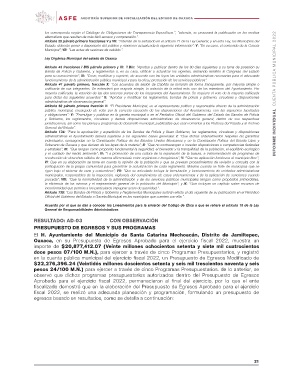 pesos 24/100 M.N.) para ejercer a través de cinco Programas Presupuestarios. de lo anterior, se