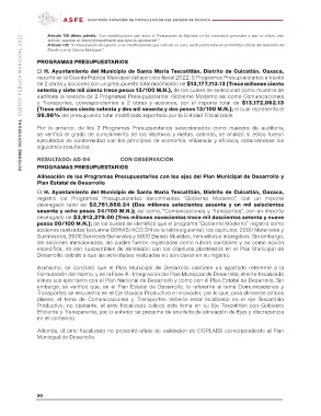 auditoría la revisión de 2 Programas Presupuestarios: Gobierno Moderno así como Comunicaciones