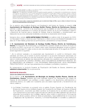 INFORME INDIVIDUAL CUENTA PÚBLICA MUNICIPAL 2022 AUDITORÍA SUPERIOR DE FISCALIZACIÓN DEL ESTADO DE OAXACA