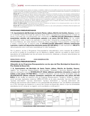 en la Cuenta Pública Municipal del ejercicio fiscal 2022, 4 programas presupuestarios a través de