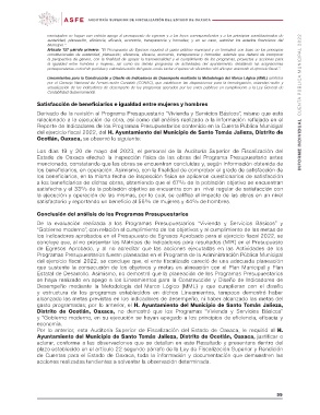 De la evaluación realizada a los Programas Presupuestarios “Vivienda y Servicios Básicos” y