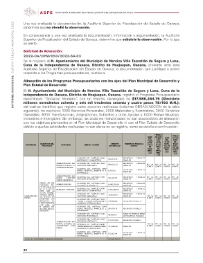 INFORME INDIVIDUAL CUENTA PÚBLICA MUNICIPAL 2022 Una vez analizada la documentación, la Auditoría Superior de Fiscalización del Estado de Oaxaca,