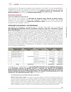 modificaciones al Presupuesto de Egresos para el ejercicio fiscal 2022, con sus correspondientes INFORME INDIVIDUAL CUENTA PÚBLICA MUNICIPAL 2022