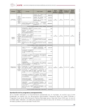 PROGRAMA OBJETIVO ACTIVIDAD OBRAS / ACCIÓN IMPORTE EJES DEL TEMAS DE EJES DEL PLAN TEMAS DE INFORME INDIVIDUAL CUENTA PÚBLICA MUNICIPAL 2022