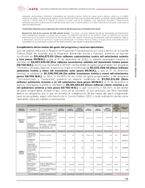 de gasto programadas, aunado a que, como ya se comentó, no fue ejecutada una obra reportada