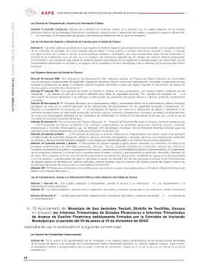 INFORME INDIVIDUAL CUENTA PÚBLICA MUNICIPAL 2022 AUDITORÍA SUPERIOR DE FISCALIZACIÓN DEL ESTADO DE OAXACA