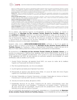 AUDITORÍA SUPERIOR DE FISCALIZACIÓN DEL ESTADO DE OAXACA INFORME INDIVIDUAL CUENTA PÚBLICA MUNICIPAL 2022
