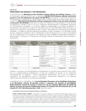 Presupuestarios; y registró en la Cuenta Pública 2022, un Presupuesto de Egresos Modificado por la