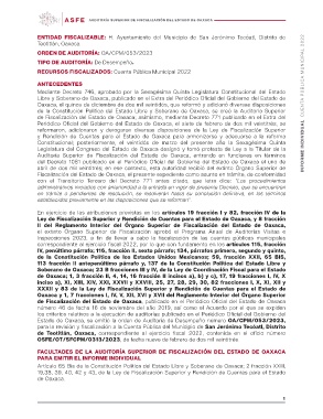 AUDITORÍA SUPERIOR DE FISCALIZACIÓN DEL ESTADO DE OAXACA INFORME INDIVIDUAL CUENTA PÚBLICA MUNICIPAL 2022