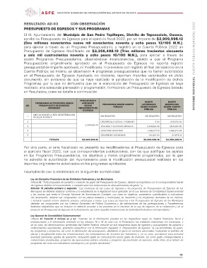 para ejercer a través de un Programa Presupuestario, y registró en la Cuenta Pública 2022 un