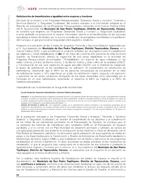 municipio en un nivel satisfactorio, reportando un beneficio al 44% de mujeres y al 56% de