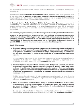 problemas de los Programas Presupuestarios, por lo que no acreditó que haya efectuado