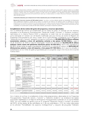 2022, de cuyo análisis se aprecia que en el programa “Desarrollo Social y Humano”, el alcance