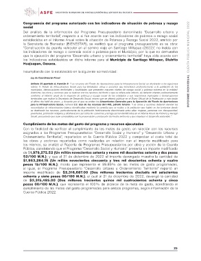 al igual, el Programa Presupuestario “Desarrollo Urbano y Ordenamiento Territorial” reportó un