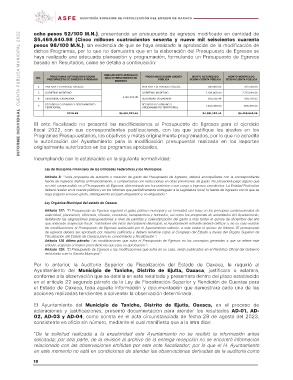pesos 98/100 M.N.), sin evidencia de que se haya realizado la aprobación de la modificación de